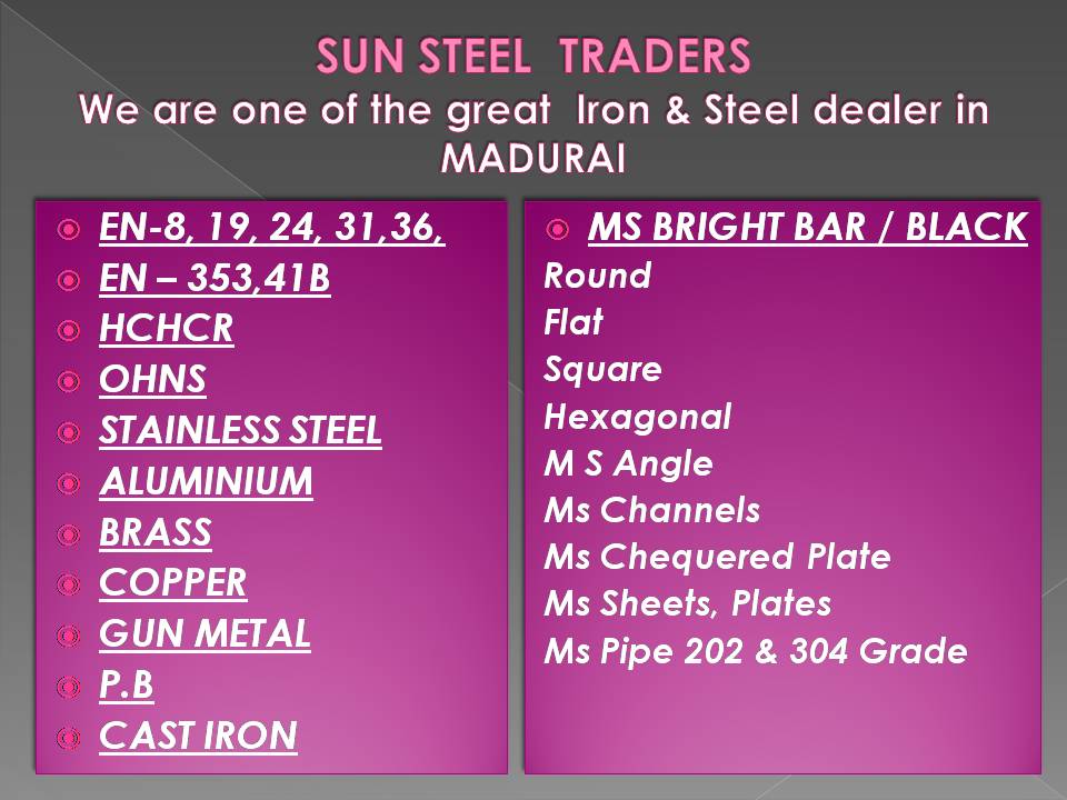 We Are Dealing Below Mentioned Materials And Also We Have All Sizes More Details. www.sunsteeltraders.in